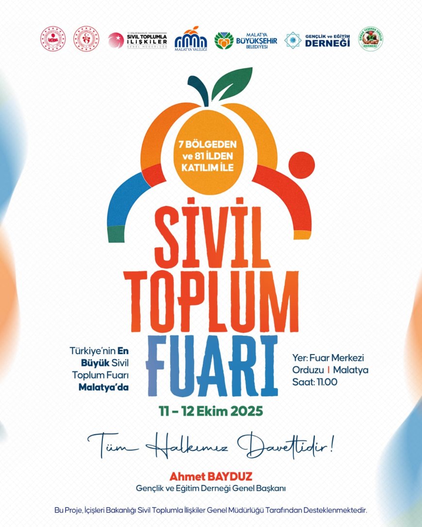 Gençlik ve Eğitim Derneği olarak İçişleri Bakanlığı iş birliğiyle, 7 Bölgeden ve 81 ilden katılımın olacağı “Sivil Toplum Buluşması ve Sivil Toplum Fuarı” etkinliğimizi düzenliyoruz. 🇹🇷